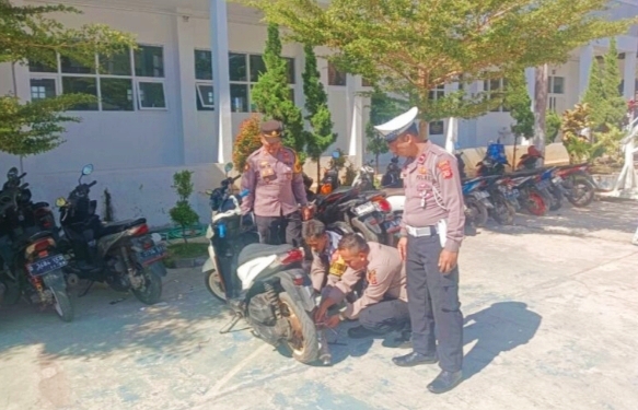 Polsek Banyuresmi Polres Garut melakukan penindakan kepada 5 unit kendaraan roda dua yang memakai knalpot tidak sesuai spesifikasi teknis/bising/brong.