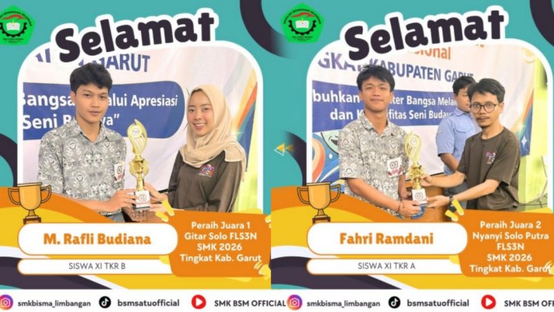 GARUT, MNP – Prestasi membanggakan kembali diraih oleh SMK Bina Siswa Mandiri Limbangan, Kabupaten Garut, dalam ajang Festival Lomba Seni dan Sastra Siswa Nasional (FLS3N) tahun 2026 tingkat kabupaten.