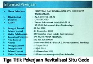 Dalam sambutannya Kepala UPTD PSDA Wilayah Sungai Ciwulan-Cilaki H Elvan Robiyana,ST, MS.i, M.PSDA menjelaskan, revitalisasi Situ Gede pada tahun ini akan dibangun 3 titik pekerjaan dulu diantaranya, renovasi gerbang masuk kawasan Situ Gede, lahan parkir, dan warung lesehan.