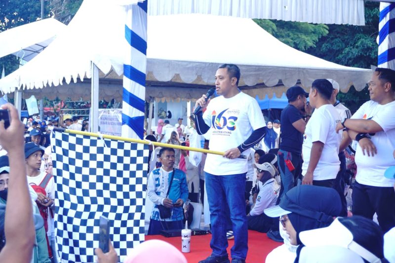 Bupati Jeneponto, H. Paris Yasir, SE., MM., hadir langsung dan turut mengikuti jalan santai bersama masyarakat.