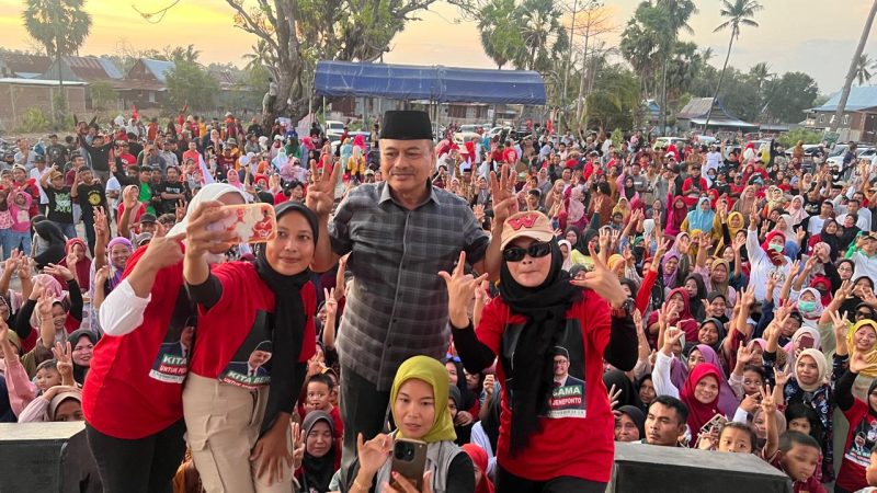 Jeneponto, MNP – Pasangan calon Bupati dan Wakil Bupati Jeneponto, Muhammad Sarif dan Moch Noer Alim Qalby mendapat sambutan meriah dari ribuan warga di Kecamatan Bangkala dan Kecamatan Bangkala Barat.