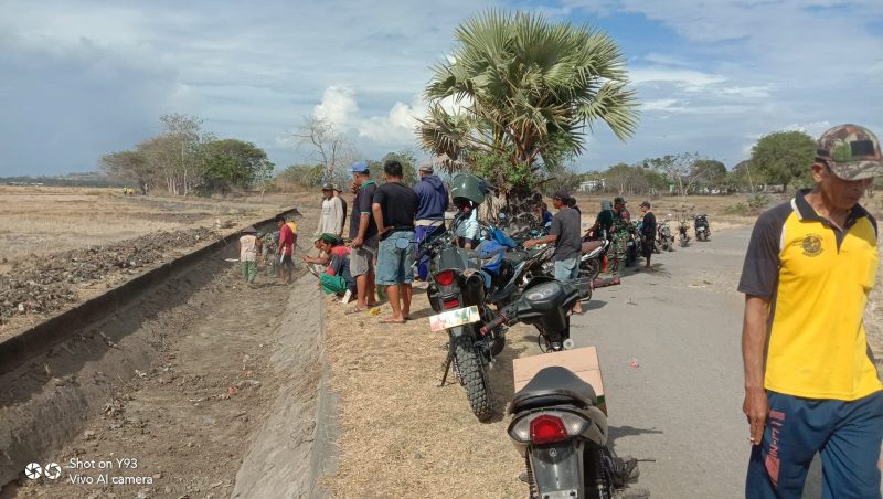 Pemdes Lentu mengumpulkan warga petani penggarak sawah bersama sejumlah anggita TNI Babinsa di seputaran area persawahan Po,ronga desa Lentu untuk giat kerja bakti.