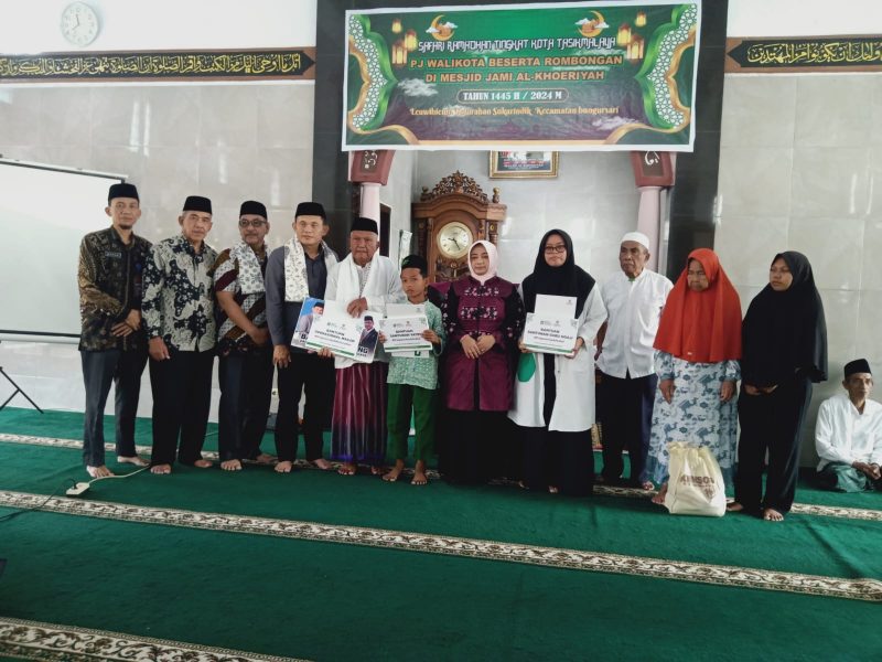 Pada kesempatan sama, Pj. Wali Kota didampingi Sekda ,Kadis Dinsos, Ketua Baznas, Forkopimda, Camat dan para Lurah se-kecamatan Bungursari menyerahkan secara simbolis bantuan untuk Kesejahteraan Masjid setempat, Santunan Yatim Piatu dan Guru Diniyah.