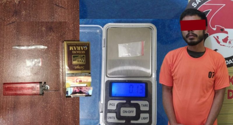 Setelah menangkap tersangka, saat petugas langsung melakukan penggeledahan. Hasilnya, petugas menemukan barang Bukti berupa Narkotika jenis Sabu seberat 0,13 gram, 1 buah kaca pirex yang juga berisikan sabu, dan sebuah mancis yang sudah tertancap jarum.