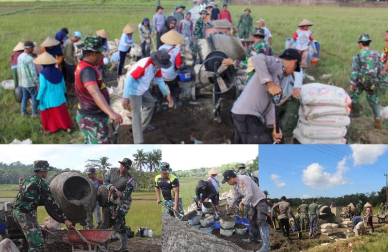 Di setiap harinya sejumlah personel Satgas TMMD terus bahu membahu kerja bakti dan bergotong royong di lokasi pembangunan jalan.