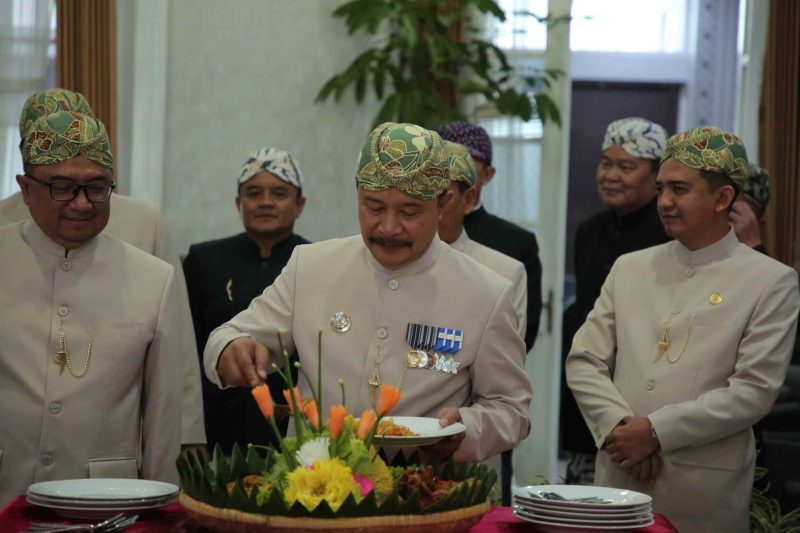 Usai acara Pj. Bupati Garut melakukan pemotongan tumpeng bersama para pejabat yang hadir di Ruang Pamengkang.