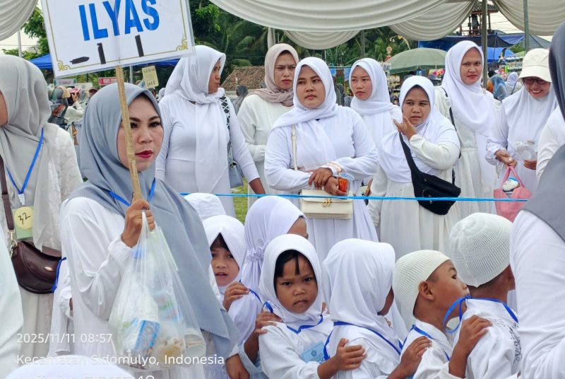 Sidomulyo, MNP – Suasana ceria bercampur khidmat tampak memenuhi Lapangan Bola Desa Sidowaluyo, Kecamatan Sidomulyo, pada kegiatan Simulasi Manasik Haji bagi siswa-siswi PAUD tahun 2025.
