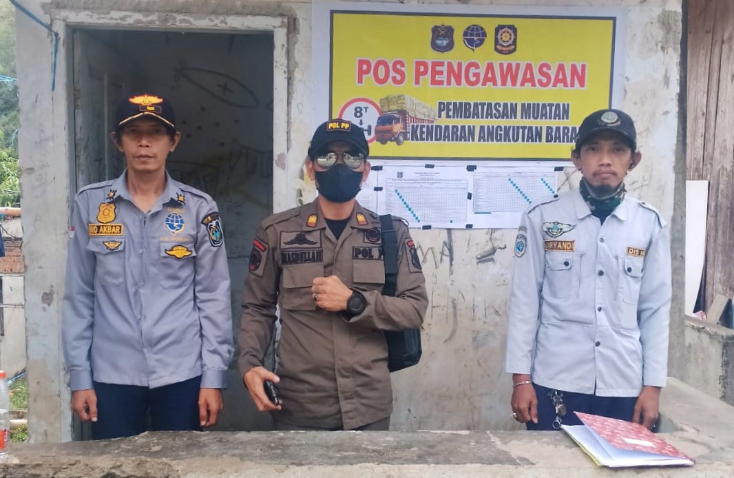 Selama sebulan, petugas Pos Pengawasan Pembatasan Muatan Kendaraan Angkutan Barang dijaga oleh petugas Dinas Perhubungan dan Satuan Polisi Pamong Praja, Damkar dan Penyelamatan.