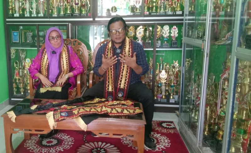 Ratna Kepala Sekolah SMA Negeri 04 Kotabumi memberikan edukasi ke siswa dan siswi membuat cindera mata untuk acara resmi, semacam tapis selendang, ada bakat dari murid murid SMA Negeri 04 untuk merajut tapis.
