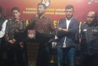 Pakpak Bharat, MNP – KPU Kabupaten Pakpak Bharat Basra Munte terlihat kompak menyambut kedatangan bakal calon pasangan Franc Bernhard Tumanggor dan Mutsyuhito Solin (FBT-…