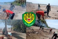 Karya Bhakti Koramil 1225/Cipatujah, Bersihkan Pesisir Pantai Muara Cinta dan Bubujung