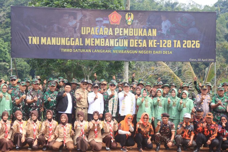 GARUT, MNP – Semangat kebersamaan dan gotong royong kembali digaungkan dalam Upacara Pembukaan TNI Manunggal Membangun Desa (TMMD) ke-128 Tahun Anggaran 2026 yang digelar di Lapang Situ Ciranca, Kampung Cidahu, Desa Mekarmulya, Kecamatan Malangbong, Kabupaten Garut, Rabu (22/4/2026).