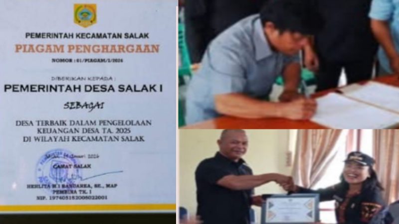 Atas integritas dan ketepatan dalam penyusunan laporan, Desa Salak I resmi dianugerahi penghargaan sebagai Desa Terbaik dalam Laporan Pertanggungjawaban Realisasi Pelaksanaan APBDesa Tahun Anggaran 2025.