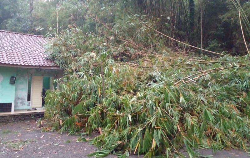 Beruntung dalam kejadian ini tidak ada korban, hanya beberapa pohon bambu menyentuh sebagian rumah warga.
