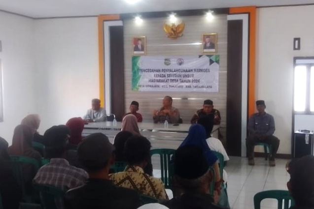 Tasikmalaya, MNP – Rapat tentang penyalahgunaan narkoba yang melibatkan seluruh unsur masyarakat di Desa Indrajaya kecamatan Sukaratu kabupaten Tasikmalaya berlangsung di gedung Aula desa.