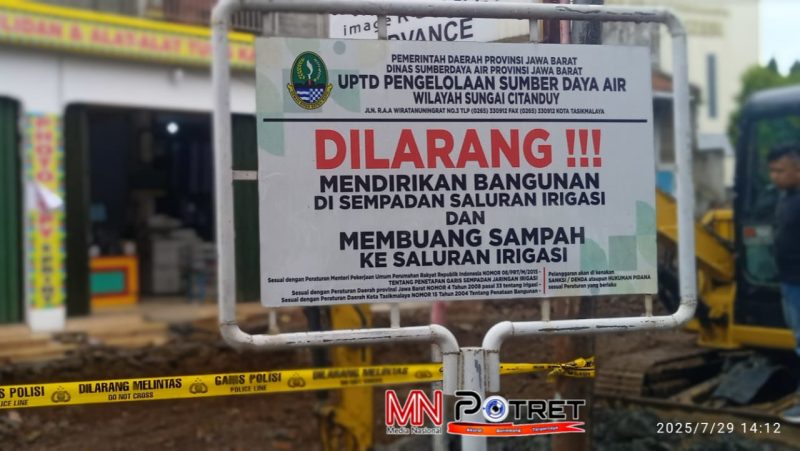 Tasikmalaya, MNP — UPTD PSDA Wilayah Sungai (WS) Citanduy melakukan pembongkaran terhadap sejumlah bangunan yang dinilai menghambat proses normalisasi saluran irigasi.