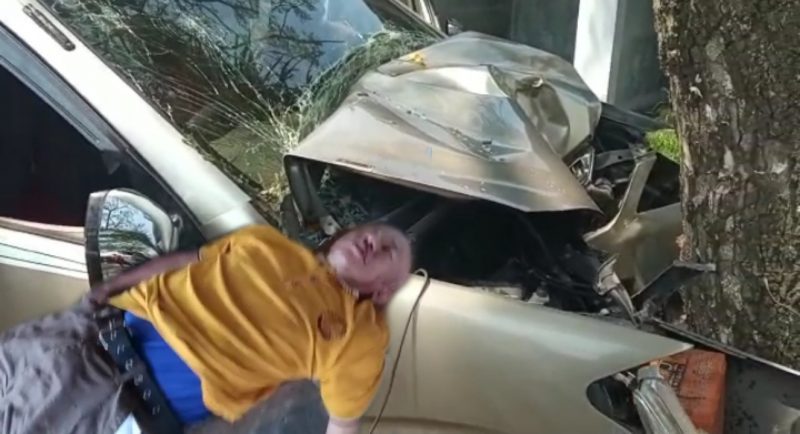 Dari video yang beredar di Aplikasi WhatsApp, terlihat sebuah mobil mini bus mengalami kecelakaan tunggal dan mengalami kerusakan cukup parah dibagian depan