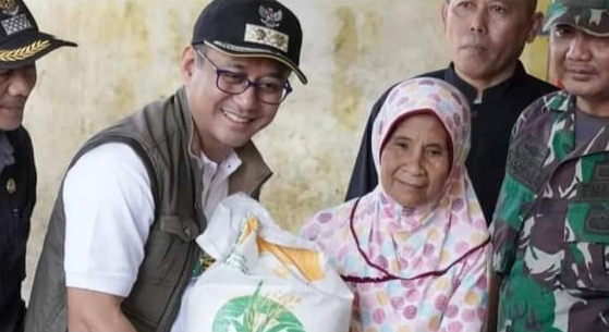 “Negara hadir ini bukan maksudnya datang mengisi daftar hadir, tapi hadir di tengah permasalahan untuk memberi solusi. Bentuk hadirnya negara hari ini adalah melalui program bantuan pangan beras.” ungkap Wakil Bupati H. Cecep NY.
