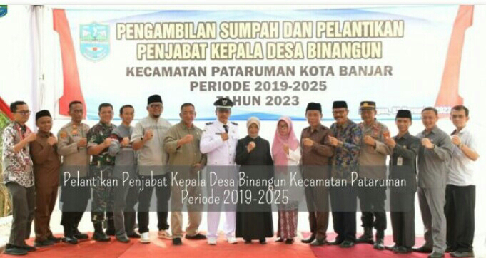 Pelantikan tersebut setelah Sahban Farid Marup, S.Th.I., selaku Kepala Desa Binangun Kecamatan Pataruman Periode Tahun 2019-2025 mengundurkan diri dan diganti Pj Dede Harisman, S.IP.