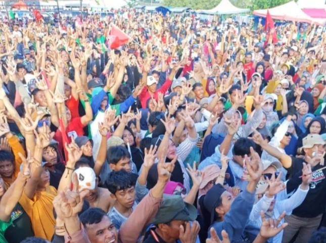 Kehadiran mereka disambut antusias oleh ribuan masyarakat setempat, yang tampak bersemangat untuk mendengarkan paparan visi dan misi pasangan calon yang disukai masyarakat Butta Turatea tersebut.